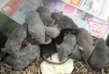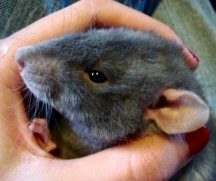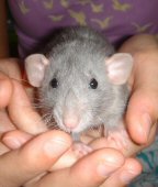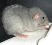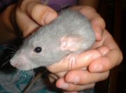 Name: Captain Augie Bugger (aka Augie) Date of Birth: June 26, 2006 Gender: Male Colors and Markings: Blue rex dumbo From:: "Oopsie" litter from Ash. Mother is Mirage (Blaze Craze Rattery) and father is Gunter (Aristorats Rattery). Pedigree information coming soon. Comments: Augie just joined my rat family today and I am absolutely thrilled to have him! Ash did a wonderful job raising him - he is such a sweetheart. Already he's stolen my affection :) I can't wait to introduce him to his two new big brothers.