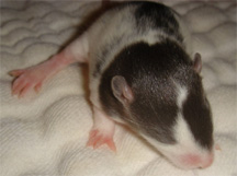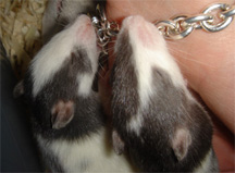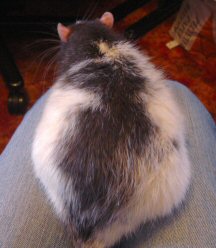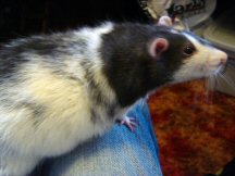 Name: Gershwin - Named after George Gershwin Date of Birth: March 28, 2005 Gender: Male Colors and Markings: Varigated with Lightning Blaze From:: Rescue from Illinois - Fostered by me Comments: Gershwin is a little cuddler. He is always really happy to come out of the cage and play with you. You are constantly his center of attention - he is either sitting on his hind legs looking up at you, licking your finger, or playing on your shirt. One of the reasons why I kept him was because of how much my brother loves him.